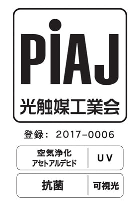 接触抗菌スプレー「keskin(ケスキン)」は、室内の弱い光(可視光)でも反応することが認められ、光触媒工業会PIAJマークを取得しています。